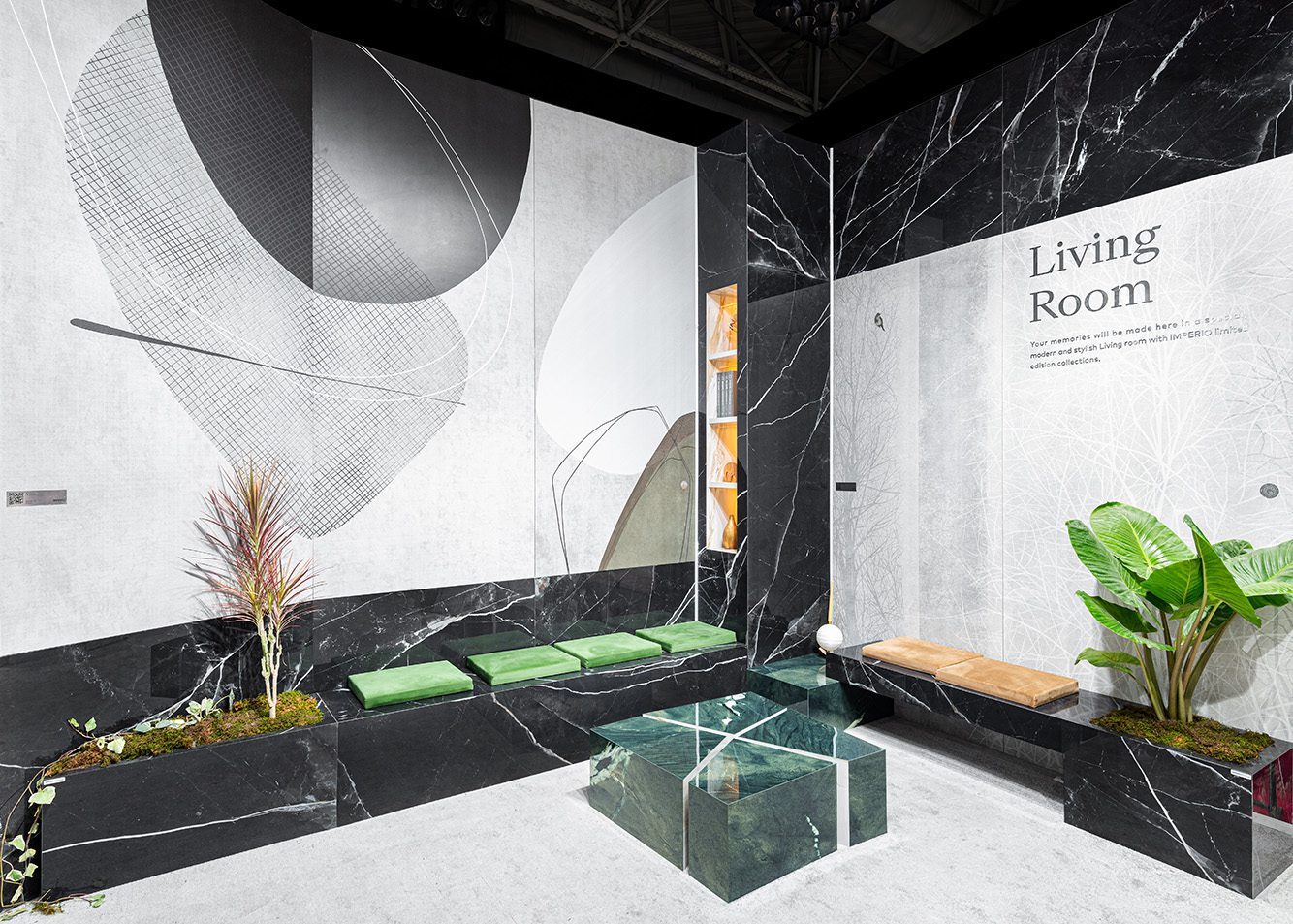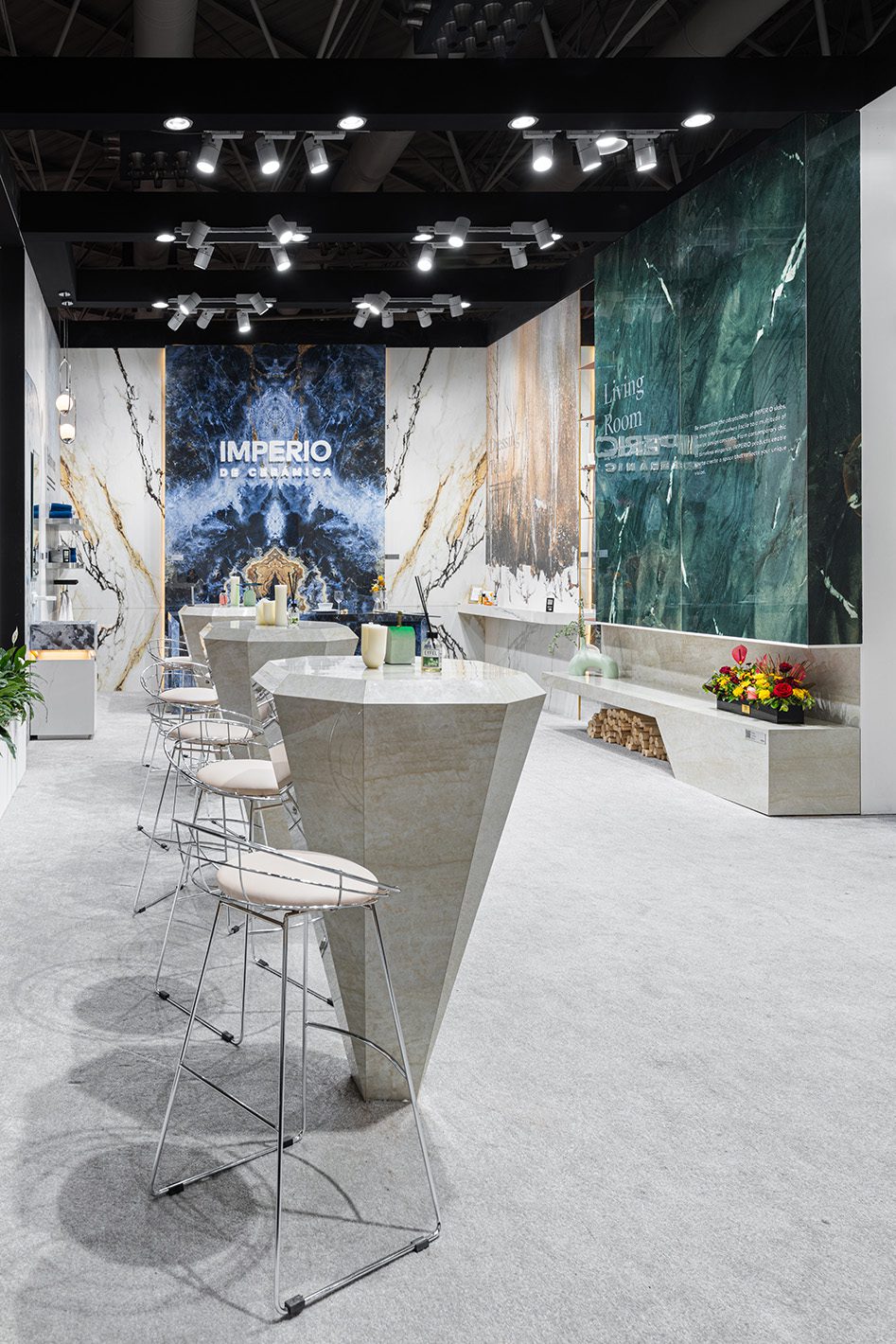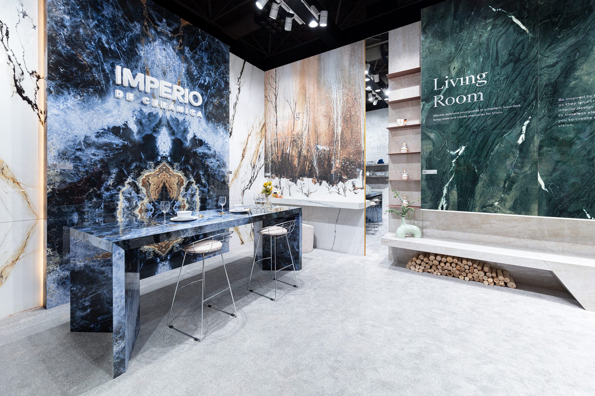 سپس به بخش گالری لوکس ایمپریو وارد میشدند که در این بخش، طرحها در قالب تابلوهای هنری به نمایش گذاشته شده بودند و بازدیدکنندگان تمایز کیفیت طرح محصولات LIMITED EDITION ایمپریو را از نزدیک لمس میکردند. در ادامه با ورود به بخش مسکونی لاکچری، کاربریهای متنوعی را با سرامیکهای اسلب دکور، استون، ماربل و چوب تجربه میکردند. با توجه به طرحهای سرامیک ایمپریو که با نگاه به ترندهای دکوراسیون داخلی دنیا و در مطرحترین آتلیههای طراحی ایتالیایی و اسپانیایی طراحی و تولید شدهاند، از آنها در کاربریهایی چون آشپرخانه، سرویس بهداشتی، حمام و پذیرایی و …. استفاده شده بود.
